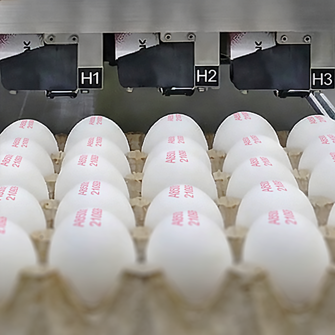 - Thermal inkjet egg coder with 6 printheads.